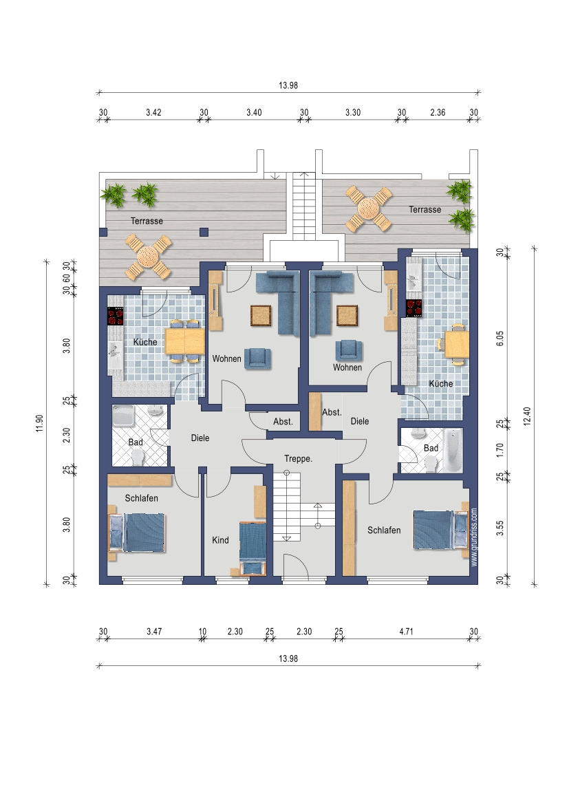 Im Keller sind den Wohneinheiten private Kellerräume zugeordnet.
